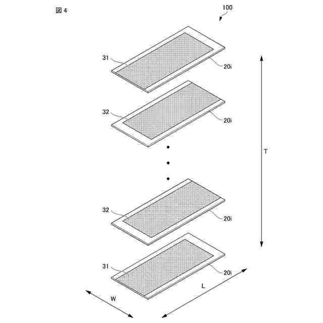 前記長さ方向及び前記積層方向に平行な断面をみたとき、