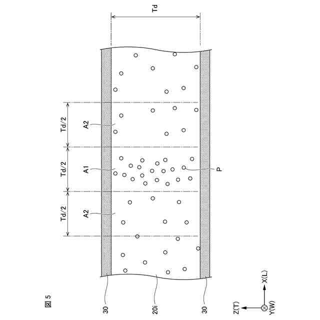【解決手段】複数の内層誘電体層20i及び複数の内部電極層30が積層する積層体と外部電極を備えた積層セラミックコンデンサであって、長さ方向L及び積層方向Tに平行な断面をみたとき、前記内層誘電体層20iは、長さ方向Lの中央部に配置される中央領域と、長さ方向Lの端部に配置される端部領域と、含み、内層誘電体層20iの積層方向Tの厚みをTdとしたとき、前記中央領域は、長さ方向Lの寸法をTd/2とし積層方向Tの寸法をTdとする方形状の領域A1と、前記領域A1と隣接し、長さ方向Lの寸法をTd/2とし積層方向Tの寸法をTdとする方形状の領域A2と、を含み、前記領域A1は、他の領域より空隙率が高く、前記領域A1における空隙率P1と前記領域A2における空隙率P2との差は、1%以上5%以下である、積層セラミックコンデンサ1。
