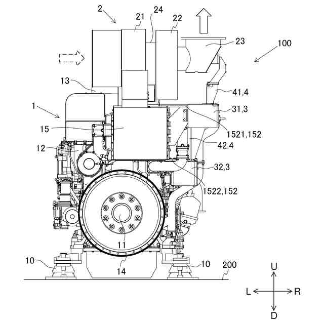 従来、エンジンを据付対象物に据え付ける際に、エンジンと据付対象物との間に防振装置を配置することが知られている。例えば、特許文献1には、エンジンと船体との間で振動を互いに伝達しにくくするために、エンジンと船体との間に防振装置を設けることが開示されている。