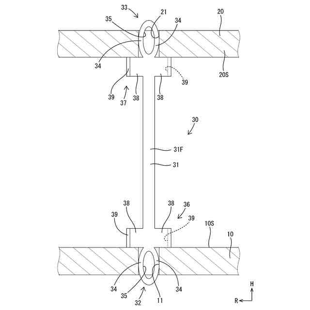 一般基板とエンド基板が、それらの板面と平行な方向へ相対変位した場合、基板間端子の姿勢が傾き、プレスフィット部もスルーホールの内部で姿勢を変化させる。プレスフィット部の姿勢がスルーホール内で変化すると、プレスフィット部の弾性変形量が変化することによって、プレスフィット部による保持力が低下したり、プレスフィット部とスルーホールの内周面との間の接触抵抗が変化したり、スルーホールの開口縁部が傷ついたりする等の不具合が懸念される。