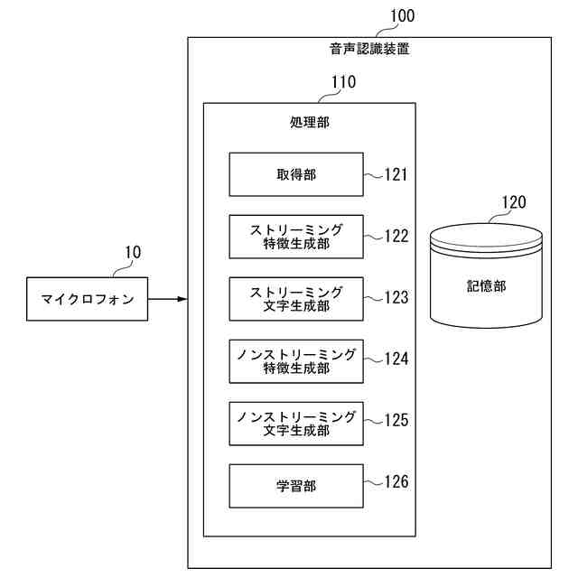 (5)本発明の第5の例は、音声ストリームの単位時間あたりのフレームを取得すること、ストリーミングエンコーダを用いて、前記フレームから第1特徴を生成すること、ストリーミングデコーダを用いて、前記第1特徴から第1文字を生成すること、ノンストリーミングエンコーダを用いて、複数の前記フレームのそれぞれの前記第1特徴を合わせた第1特徴列から、第2特徴列を生成すること、複数のノンストリーミングデコーダを用いて、前記第2特徴列から第2文字列を生成すること、前記第1特徴列及び前記第2特徴列に基づいて、前記ストリーミングエンコーダと前記ノンストリーミングエンコーダとの間で知識蒸留を行うこと、を含む音声認識方法である。