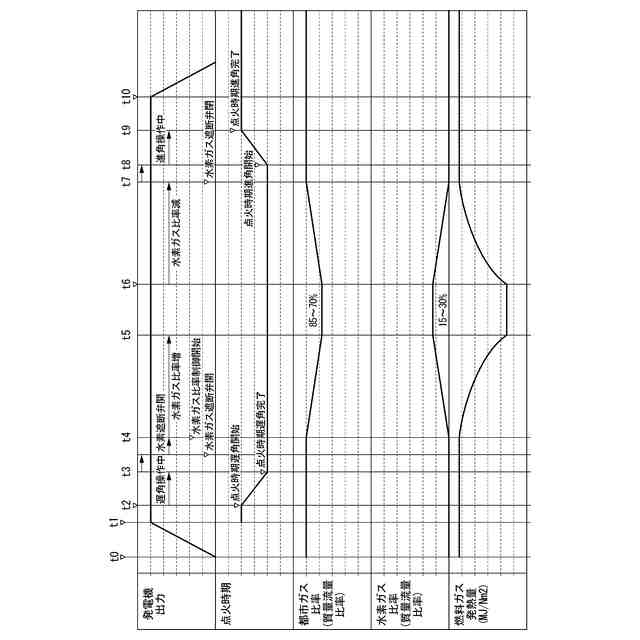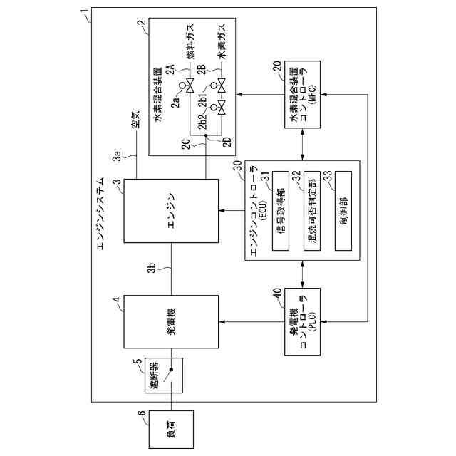 削減の一環として、都市ガス(天然ガス)等の燃料ガスに水素を混合した燃料によってガスエンジンを駆動し、発電するシステムが提案されている。従来のガスエンジンでは、運転中に同じ燃料を使い続ける場合が多く、燃料のガス性状が切り替わる場合であっても、その変化の大きさは限定的であった。これに対し、水素は、密度やカロリーが都市ガスと大幅に異なるため、都市ガスのみを使用する運転状態と、水素を混合した燃料を使用する運転状態とでは、これまでに想定していないような変化が生じる。これに対応するためには、水素の混合率に応じてエンジンの点火時期や空燃比を切り替える必要がある。また、燃料の混合の有無を切り替える際に、適切な速度で空燃比のパラメータを変化させる必要がある。