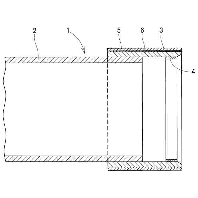 特許文献1で採用されているダクタイル鋳鉄管は、その遠心鋳造の際に直管部と受口との間にテーパ部を形成することができ、そのテーパ部に沿ってシートを貼り付けることによって新設管の推進時におけるシートの剥がれを防止することができる。