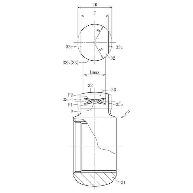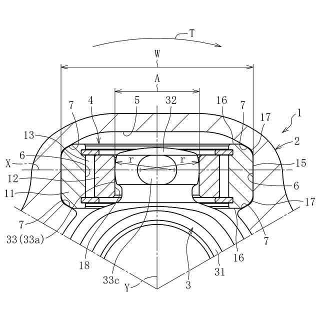また、上記のトリポード型等速自在継手では、脚軸132の横断面が楕円形状であり、且つ、インナリング112の内周面が断面凸円弧形状であるため、インナリング112と脚軸132との接触が略点接触となり、脚軸132の動きに伴ってローラユニット104を傾かせるように作用する摩擦モーメントを抑制できる。また、継手が作動角を取ったときでも、脚軸132が、インナリング112の幅方向(脚軸132の軸線方向)中央部と接触するため、左右傾きを抑制する構造になっている。しかし、継手が大きな角度を取ったとき、脚軸132の横断面が楕円形であることで、ローラユニット104に前後傾き(図18参照)を発生させる力が生じる。また、脚軸132とインナリング112との接触面積が小さいため、極めて厳しい車両使用条件などによる高トルク負荷時などにおいて両者の接触面の面圧が大きくなり、脚軸132の耐久性への影響が懸念される。