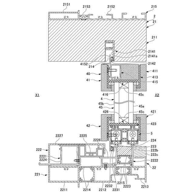以下、本開示の実施形態について、図面を参照しながら詳しく説明する。なお、本明細書において、「見込み方向」とは、建具における室内外方向に沿う方向である。「見付け方向」とは、建具におけるガラス(面材)の面方向に沿う方向であり、見込み方向に対して直交する方向である。「見付け面」は、建具における室外側及び室内側に面するそれぞれの面を意味し、「見込み面」は、建具において室内外方向に延びる面を意味する。図面において、建具の室外側を「室外側X1」とし、建具の室内側を「室内側X2」とする。建具を正面視したときの横方向を「左右」とする。