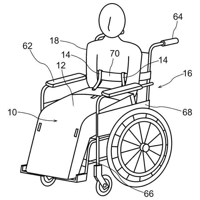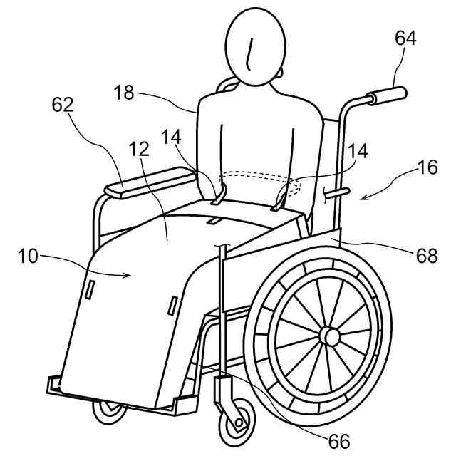 また、特許文献3には、ひざ掛け的下半身カバーを留め付ける方法として、ウェストベルトの両サイドにスナップテープを付け、ウェストに巻き付けたり車椅子のパイプに巻き付け留めることが記載されている。