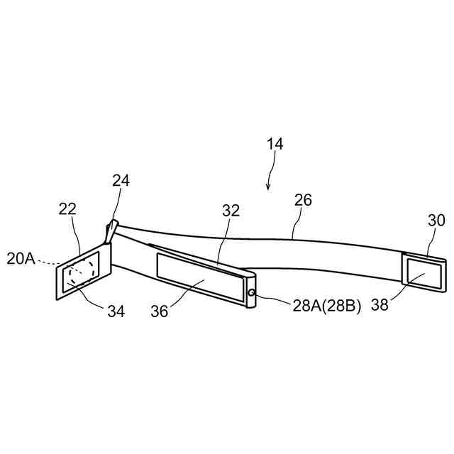 各ストラップは基端ストラップと、アジャスタと、メインストラップと、第1の面ファスナー要素と、第2の面ファスナー要素と、第3の面ファスナー要素とを有して構成され、基端ストラップは本体部に回転可能に取付けられるとともにアジャスタに連結され、メインストラップはアジャスタに挿通され挿通位置を調整することにより長さを調整可能であり、第1の面ファスナー要素は基端ストラップに設置され、第2の面ファスナー要素及び第3の面ファスナー要素はメインストラップの両端部に設置され、第2の面ファスナー要素は同じストラップの第1の面ファスナー要素と着脱自在であり、一方のストラップの第3の面ファスナー要素は他方のストラップの第3の面ファスナー要素と着脱自在であってもよい。