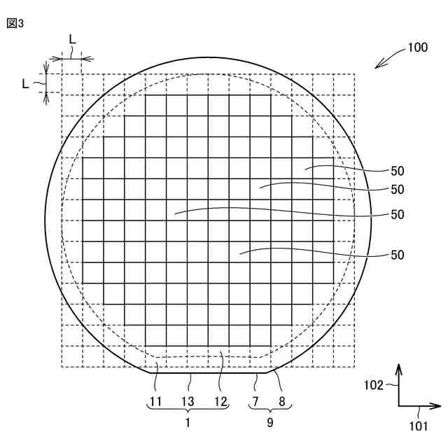 図3は、金属不純物の面密度の測定位置を示す平面模式図である。