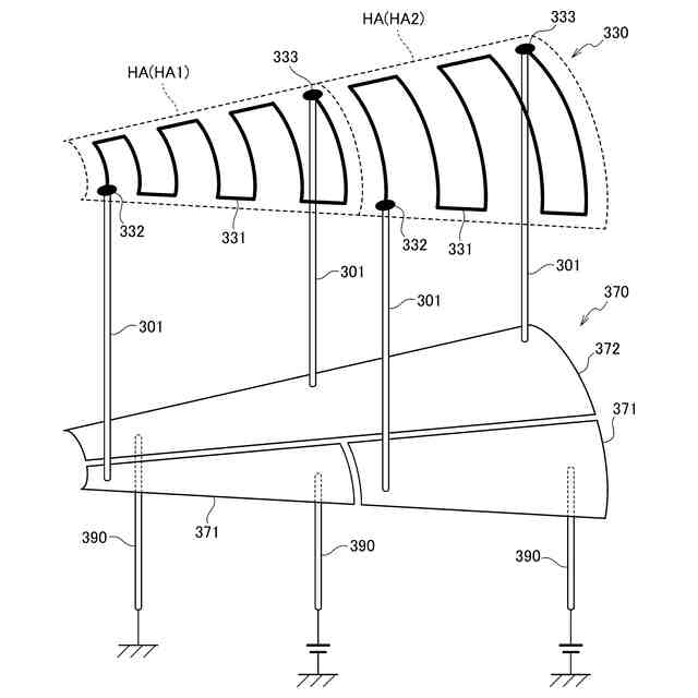 前記開口と重ならない円形の第2領域と、のそれぞれを通らない経路に沿って引き回されており、
