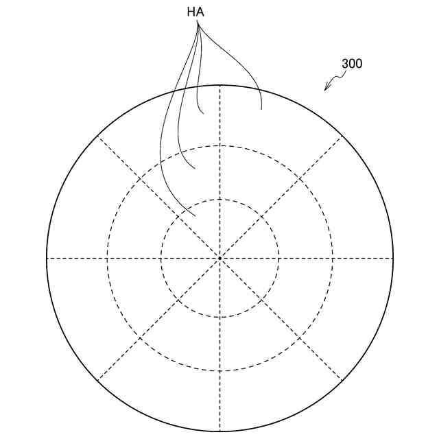 しかしながら、一部においては、発熱部を引き回すことのできない部分や、発熱部を引き回すことが適切でない部分も存在し得る。例えば、例えば吸着電極等に繋がる電路、がヒーターを貫くように設けられている場合には、当該電路を包含する部分を避けるような経路に沿って、発熱部を引き回す必要がある。また、発熱部が、複数の領域のそれぞれにおいて個別に引き回される場合には、互いに隣り合う一対の領域の間の部分を通らないような経路に沿って、発熱部を引き回す必要がある。
