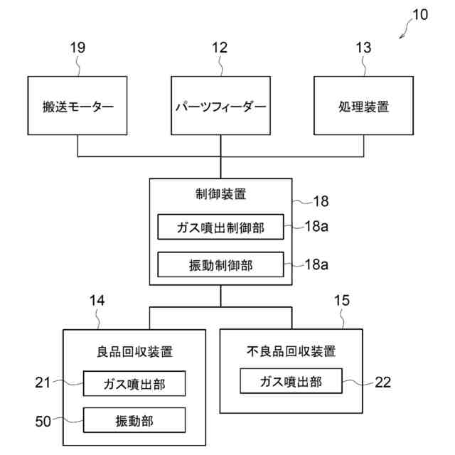 ケースを使って多数の電子部品を運搬するために、テーブル上の電子部品の検査等の処理を行った後に、電子部品をテーブル上から吹き飛ばすことでケースに回収することが考えられる。例えばテーブル上の複数の電子部品を誘導路(ガイド区画部)に向けて連続的に吹き飛ばすことで、これらの電子部品が、次々と誘導路を通ってケース(特に投入口)に向かって進行し、最終的に投入口を介してケース内に収容される。