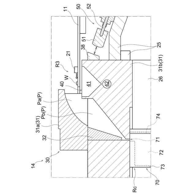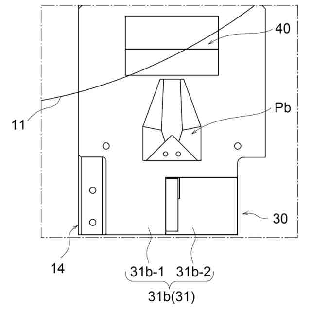 前記ガイド区画部は、前記上流誘導路を区画する上流ガイド区画部と、前記下流誘導路を区画する下流ガイド区画部と、を有し、