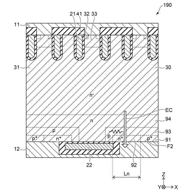 及びの表記は、各不純物濃度の相対的な高低を表す。すなわち、「+」が付されている表記は、「+」及び「-」のいずれも付されていない表記よりも不純物濃度が相対的に高く、「-」が付されている表記は、いずれも付されていない表記よりも不純物濃度が相対的に低いことを示す。これらの表記は、それぞれの領域にp形不純物とn形不純物の両方が含まれている場合には、それらの不純物が補償しあった後の正味の不純物濃度の相対的な高低を表す。以下で説明する各実施形態について、各半導体領域のp形(第2導電形)とn形(第1導電形)を反転させて各実施形態を実施してもよい。