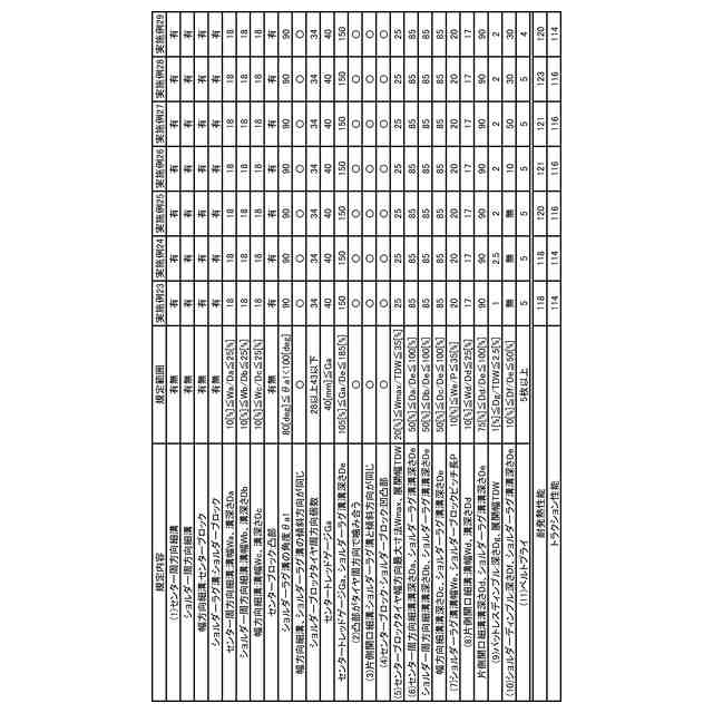 図7は、実施形態に係る空気入りタイヤの性能試験の結果を示す図表である。
