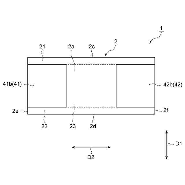 互いに対向する第一主面及び第二主面と、互いに対向する第一端面及び第二端面と、互いに対向する第一側面及び第二側面と、を有する素体と、
