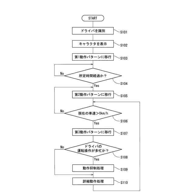 前記ドライバ状態検出手段で検出した前記ドライバの状態が多忙な場合、前記第2動作態様における前記キャラクタの動きを抑える構成である