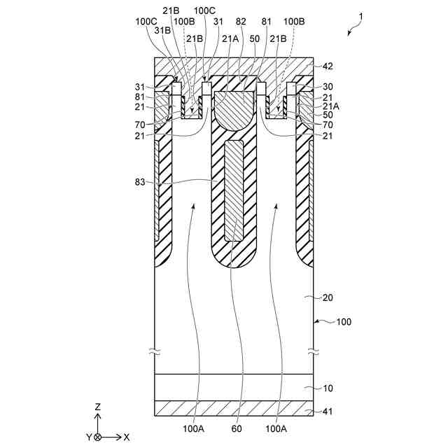 半導体層100の厚さ方向は、第2方向Zに沿う。第2方向Zに直交する2方向を、第1方向X及び第3方向Yとする。図1において、第1方向Xは横方向であり、第2方向Zは縦方向であり、第3方向Yは紙面を貫く方向である。
