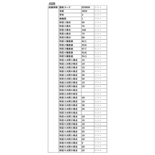 成績情報記憶部に記憶される成績情報(データ)のデータ構造の例を示す図