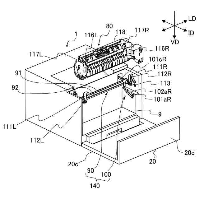 移動ユニットから定着装置が取り外された状態を示す斜視図。