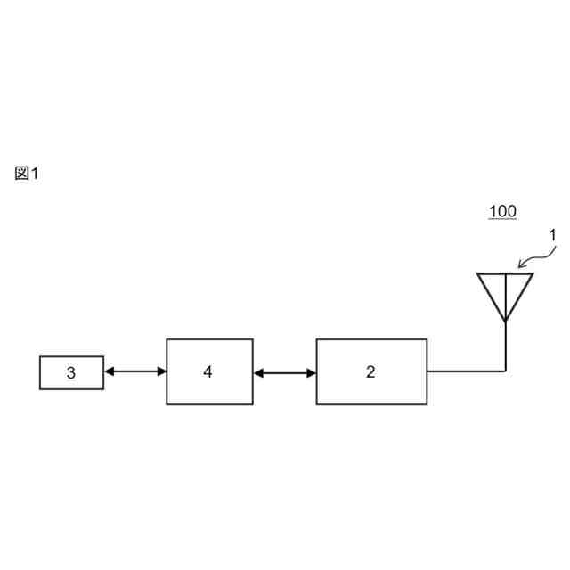 図1に示すように、導波管変換装置100は、アンテナ1と、導波管2と、チップ3と、通信装置4とを備えている。導波管変換装置100は、高周波モジュールであり、通信装置4が、後述する駆動部4C等の構成を有することで、各種の電波の送受信が可能に構成されている。本実施形態に係る導波管変換装置100は、ギガヘルツ波、テラヘルツ波などの高周波を用いたレーダー、センサー、無線通信システムに好適な高周波モジュールである。また、導波管変換装置100は、送信機及び受信機のいずれか一方として機能するものであってもよいし、送信機及び受信機の両方の機能を有していてもよい。