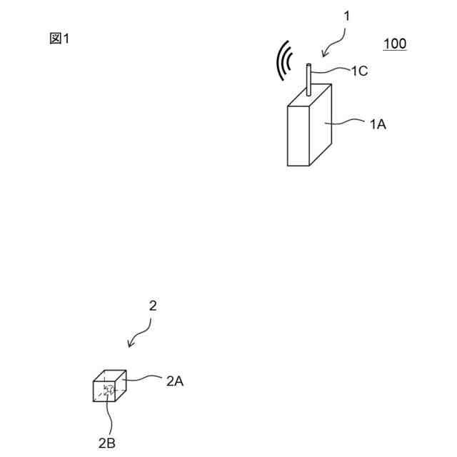 図1に示すように、実施形態において、振動数検出システム100は、送受信装置1と、送受信装置1と通信可能な振動センサ2とを備えている。振動数検出システム100において、振動センサ2は電波吸収体構造をなしており、また、弾性構造(実施形態ではバネ構造)を有している。これにより、振動センサ2の電波吸収体としての吸収周波数帯が変化する。実施形態に係る振動センサ2の詳細構成は、後段で詳しく説明するが、図2に示すように、振動センサ2は、重り部材2aと、弾性部材2bと、金属層2cと、気体層2dとを備えており、重り部材2aが振動することで(重り部材2aと金属層2cとの間の距離xが変化することで)、電波の吸収特性が変化する。振動数検出システム100では、送信する電波の電力と振動センサ2で反射して戻る電波の電力とを取得することで、振動センサ2の振動数を検出することを可能としている。