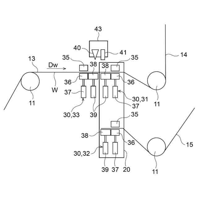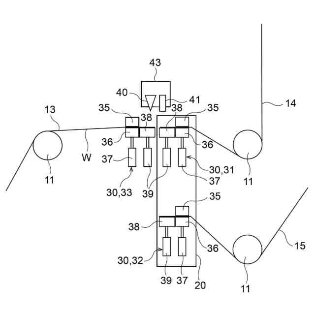 【解決手段】クランプ装置30は、固定された固定板35と、固定板に対して移動可能であり、固定板との間でウェブを挟持する可動板36と、可動板を固定板に対して移動させる可動板移動機構37と、を備えている。可動板は、ウェブWの幅方向に互いに離間して配置された複数の可動板部分36aを含む。