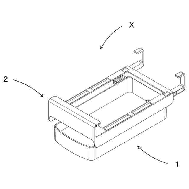 上記課題を解決するための本発明は、棚板に懸下する収納具であって、物品を収納する収納部と、前記棚板に取付けられる保持部と、を備え、前記保持部は、前記棚板の奥行方向に前記収納部を摺動自在に保持し、前記棚板に取付けられたとき、前記収納部の摺動方向は、前記棚板の面に対して傾斜している、収納具である。