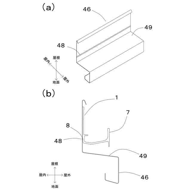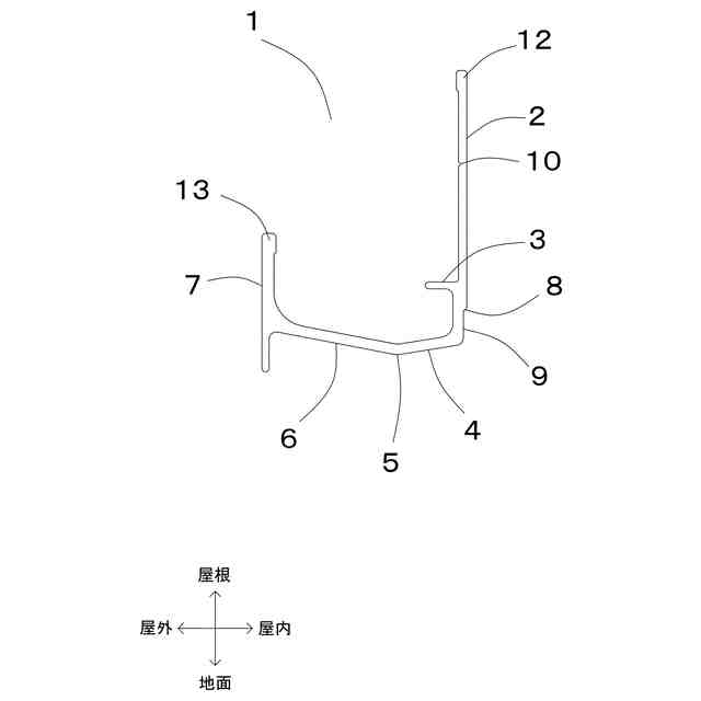 さらに該固定面の地面側の端部から屋外側に向かって屋内側傾斜面、底部、屋外側傾斜面を断面視略V字状に設け、