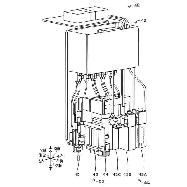 各吐出ユニット及び移動ユニット25の概略の一例を示す説明図。