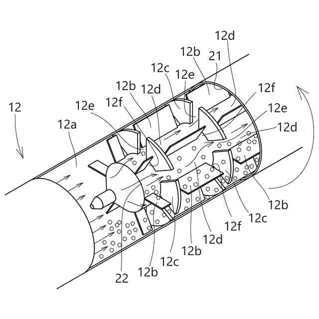 【解決手段】外筒21の内周面と内筒22の外周面で区画形成された反応空間12aに内筒の外周面から複数枚のリフタープレート12bと複数枚のバッフルプレート12cを立設し、反応空間を径方向に対を成すリフタープレートと軸心方向に対を成すバッフルプレートによって複数の反応室12dと、軸心方向に隣接する反応室を連通する通路12eと径方向に隣接する反応室を連通する通路12fを形成する。回転円筒体の回転に伴い反応室が回転し、反応空間に供給された原料が回転円筒体の底部から上部へとリフタープレートで掻き上げられ、掻き上げられた原料が通路12e、12fを通って隣接する反応室へ移動し、原料が回転円筒体の上部に滞留している水素ガスと効率よく撹拌される。