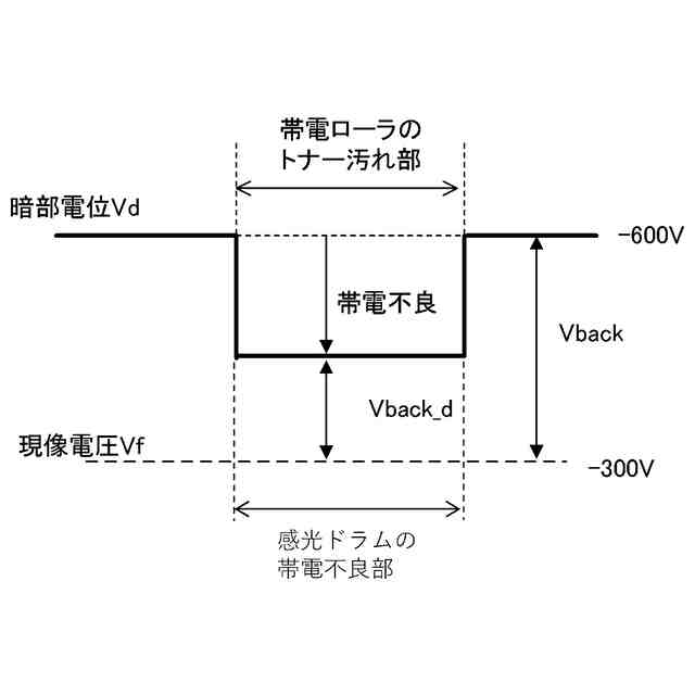 実施例1における帯電ローラのトナー汚れに伴う帯電不良を説明する図