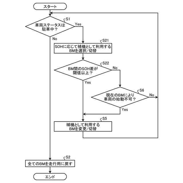 車両を始動するための電力は、補機に接続されたバッテリモジュールから供給される。また、車両が駐車中には、バッテリモジュールから補機に暗電流が流れる。その結果、暗電流により補機に接続されたバッテリモジュールの電力が低下すると、車両を始動できなくなる場合がある。