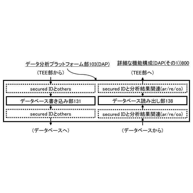 【解決手段】 信頼される実行環境部102(TEE部)は、仮名化処理部123とTEE内確率的暗号化処理部124を有する。仮名化処理部123は、機微情報161を仮名情報163に変換する。TEE内確率的暗号化処理部124は、乱数164と仮名情報163を組み合わせたものに対して暗号化処理を行って、セキュアな機微情報165を生成する。データ分析プラットフォーム部103(DAP部)は、DAP内確率的暗号化解除部132とデータ分析部133を有する。DAP内確率的暗号化解除部132は、セキュアな機微情報165に対して復号化処理を行って、仮名情報163を生成する。データ分析部133は、仮名情報163と、機微情報以外の情報162の部分の一方または両方を用いて、分析を行う。