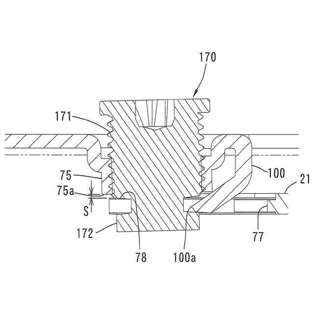 好ましくは、前記サポート部材のネジ支持部は、前記第1方向に延びるスリットと、前記スリットの両側に形成された一対の支持板部とを有し、前記調節ネジの係合部は、環状溝と、この環状溝に囲われた挿通部とを有し、前記挿通部が前記スリットに挿通されるとともに、前記一対の支持板部が前記環状溝に挿入される。