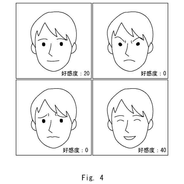 図4は、実施形態にかかるユーザの表情に対応する好感度の一例を示す図である。