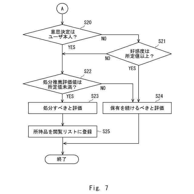 物品を保有し続けるか処分するかの判断においては、当該物品に対するユーザの好感度を考慮することが望ましい。例えば、思い入れが強く、好感度の高い物品の処分を検討する場合、ユーザは当該物品の使用頻度や推定売却価格のみに基づいて当該物品の処分を決定することが困難な場合がある。