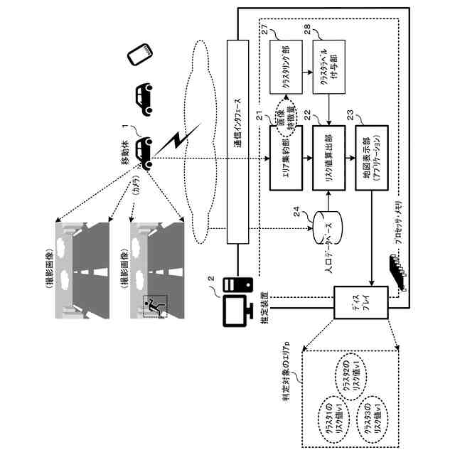 これに対し、本願の発明者は、地域のエリア毎に、渋滞、事故、事件等の時々刻々変化する危険の度合いを、ユーザ又はオペレータに予め明示することができないか、と考えた。例えば車載カメラの撮影画像を収集し、地域のエリア毎に、危険のリスク値を推定することができないか、と考えた。このとき、収集された撮影画像の数が少ないエリアであっても、できる限り確信度の高い危険のリスク値を推定することができることが好ましい。