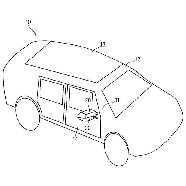 図2は、サイドミラー、追加外装部品、および支持部材を車両の外側から示す斜視図である。