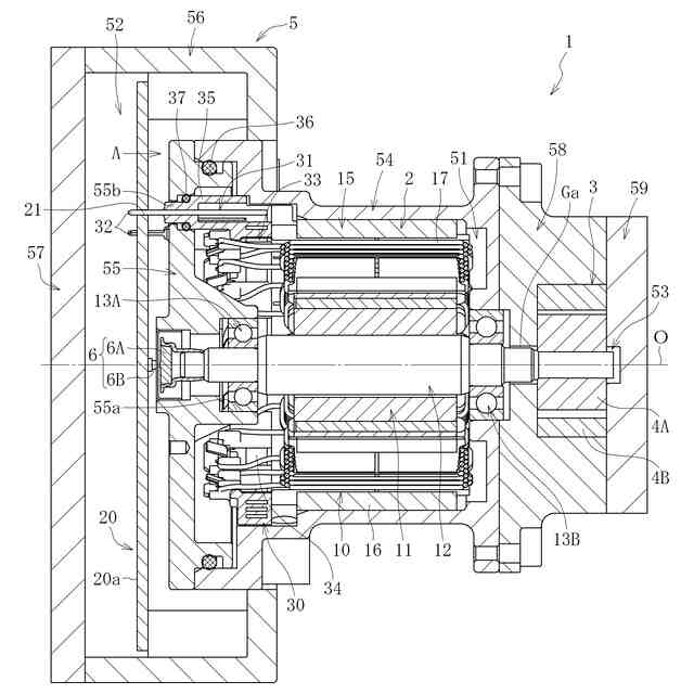特許文献1のモータユニットにおいては、制御基板に対するコイル線の端末部の接続作業を簡便に実施可能とすべく、電動モータと制御基板との軸方向間に、コイル線の端末部を制御基板の孔部に向けて軸方向に案内しつつ所定の位置・姿勢で保持する樹脂製のコイルガイドを設けている。このコイルガイドは、ハウジングの内部空間を電動モータの収容室と制御基板の収容室とに区分する隔壁としての機能と、モータ収容室の一端開口部を封口する蓋部材としての機能とを併せ持つ。そのため、コイルガイドには、軸方向の貫通孔からなり、コイル線の端末部を軸方向に案内する案内部と、コイルガイドの一端面又は他端面のうち案内部が開口する領域に設けられたポッティング領域と、ポッティング領域に充填されたポッティング材とが設けられる。