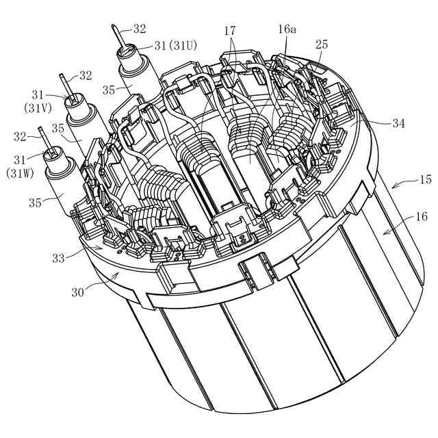 例えば下記の特許文献1には、モータユニットと、モータユニットの出力を受けて駆動されるポンプユニットとを備えた車両用の電動ポンプが記載されている。上記モータユニットは、三相モータからなる電動モータと、電動モータの軸方向と直交する方向(径方向)に沿って配置され、電動モータの作動を制御する制御部が設けられた基板(制御基板)と、電動モータ及び制御基板を互いに隔絶した状態で収容したハウジングとを備えており、モータステータに設けられた三相のコイル(U相、V相及びW相コイル)の端末部を制御基板に設けられた対応する孔部に直接挿入することにより、コイルと制御基板(に設けられた制御部)とが電気的に接続される。つまり、特許文献1のモータユニットでは、コイルを構成するコイル線の端末部が電動モータの動力線として機能する。