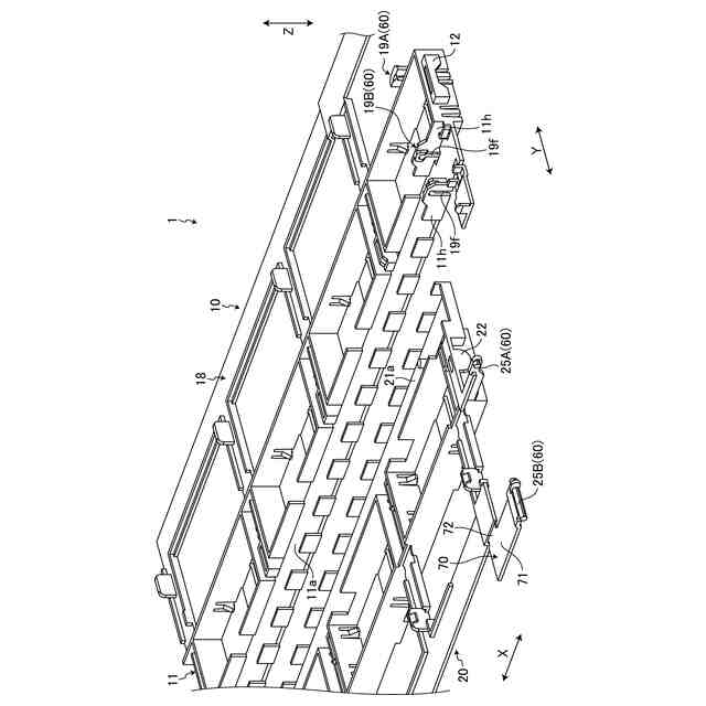 ここで、長尺のフラット配索材の一部を第一ケースに収容させ、他の一部を第二ケースに収容させることが検討されている。一つのフラット配索材を二つのケースに収容する場合に、ケースを取り扱う際のフラット配索材への負荷を軽減できることが望ましい。例えば、二つのケースが連結されることなく独立して移動する場合、フラット配索材に大きな負荷がかかることがある。