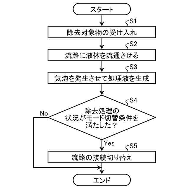 【解決手段】除去装置は、除去対象物を受け入れるタンクと、タンクに接続され、液体を流通させる複数の配管と、複数の配管同士を接続する接続管と、を含む流路と、複数の配管のそれぞれに配置され、液体中に気泡を発生させて処理液を生成するファインバブル発生装置と、それぞれのファインバブル発生装置をタンクに対して直列接続または並列接続となるように流路の接続切り替えを行う流路切替部と、を備える。