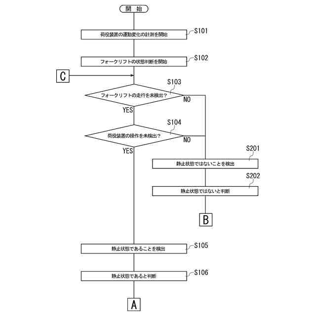 前記判断部は、前記状態検出部が前記静止状態を検出した場合において、前記運動計測部が計測した前記運動変化が前記閾値を超えていると判断すれば、前記荷役装置又は前記荷役装置の近傍に人間が存在する要注意状態であると判断することを特徴とする。