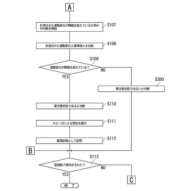 前記状態検出部及び前記運動計測部と情報伝達可能に接続されるとともに、前記運動計測部が計測した前記運動変化が予め設定された閾値を超えているか否かの判断を行う判断部とを備え、