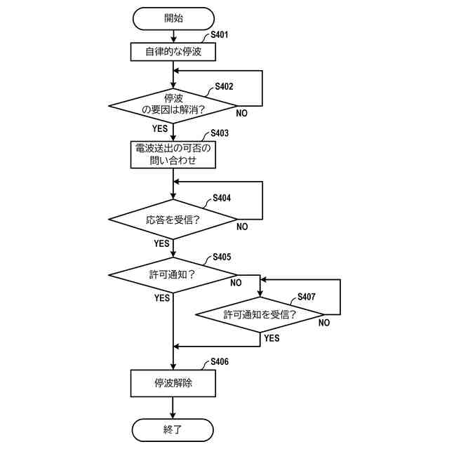 前記他の所定の要因に基づいて前記停止を行った後、当該他の所定の要因が解消したことに基づいて前記停止を解除する前に、前記制御装置から前記周波数帯を用いる電波の送出を停止すべきことを示す停止情報が通知されていないことの確認を行う確認手段と、を有し、