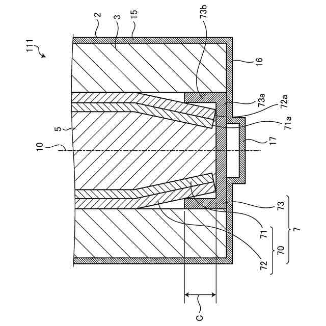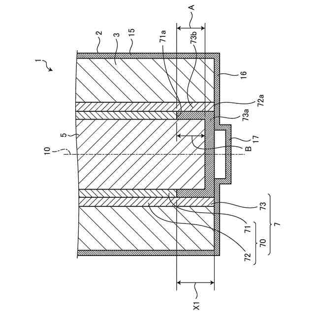 前記第1の筒部は、内周側に設けられた内層と、前記内層の外周側に設けられた外層とを有し、