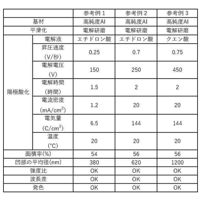 特許文献1には、光反射層と、ナノホールを有する光透過層とをこの順に備え、光透過層がナノホールの内表面に光吸収層を有する発色構造体が開示されている。特許文献1の発色構造体によれば、光透過層を透過した光が光反射層の表面において全反射されると共に、入射光が光透過層の外表面において反射される。これにより、塗料が塗布されていなくても、発色しているように見える発色構造体を提供している。また、特許文献2には、銅濃度が30ppm以下であるアルミニウム材が開示されている。特許文献2によれば、銅濃度が30ppm以下であるアルミニウム材を用い、規則的な細孔配列の妨げになるCu量の上限値を規定することにより、陽極酸化処理で規則配列したポーラスアルミナを提供している。