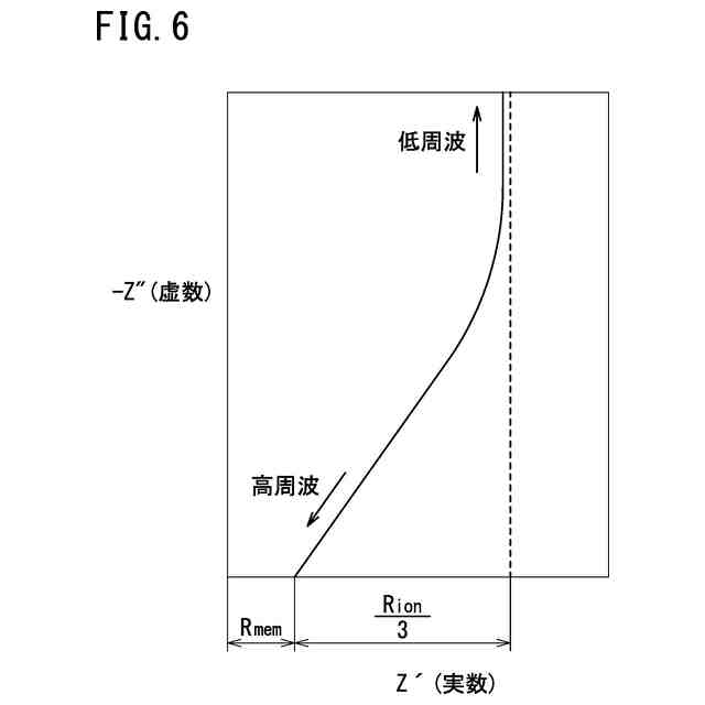 図6は、等価回路から得られるセルのインピーダンスを示すナイキストプロットである。