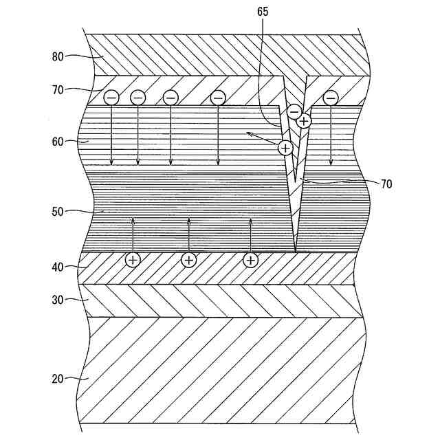 【解決手段】 n型不純物を含む第1n型半導体層と、第1n型半導体層上に配置され、p型不純物を含む第1p型半導体層と、第1p型半導体層上に配置され、孔部を有する活性層と、活性層上に配置され、実質的にn型不純物を含まない半導体からなる中間層と、中間層上に配置され、n型不純物を含む第2n型半導体層と、第1n型半導体層と電気的に接続された第1電極と、第2n型半導体層と電気的に接続された第2電極と、を含み、中間層は、少なくとも前記孔部の内側面を覆っている。