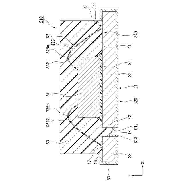 前記端子は、前記リードフレームの表面に形成される電極部を含み、